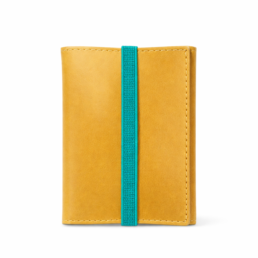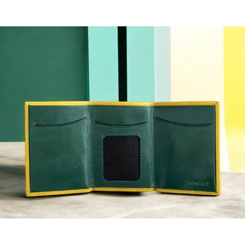 Cartera hombre pequeña amarillo y azul.